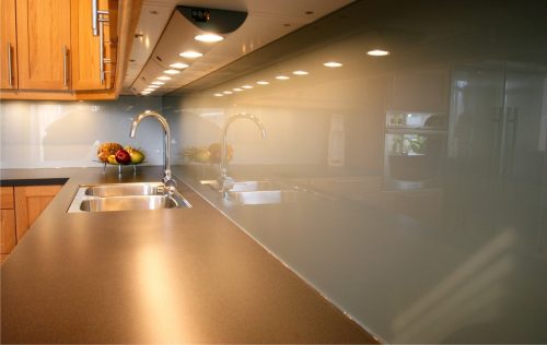 Pot fi placate cu sticlă colorată lavoarele în băi, zonele de lucru și blaturile din bucătării, dar și zone de trafic intens din interiorul spațiilor comerciale și clădirilor de birouri (recepții, holuri, baruri,etc.).